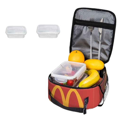 - Pojemna: Wymiary 26x21x11 cm pomieszczą pojemniki na jedzenie, napoje i przekąski.