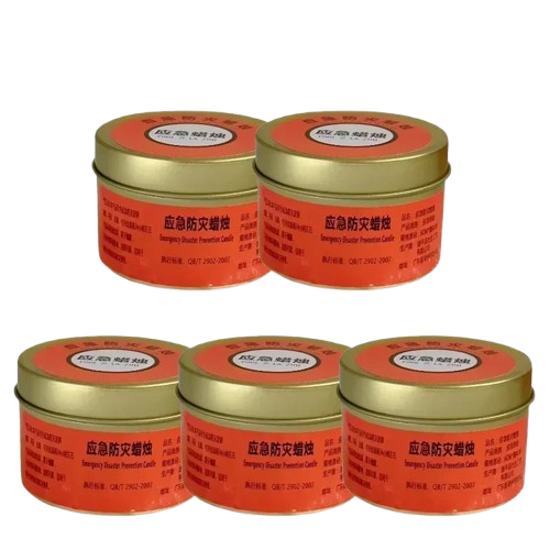 5 świec awaryjnych w metalowych puszkach (80 g każda, 30h palenia)