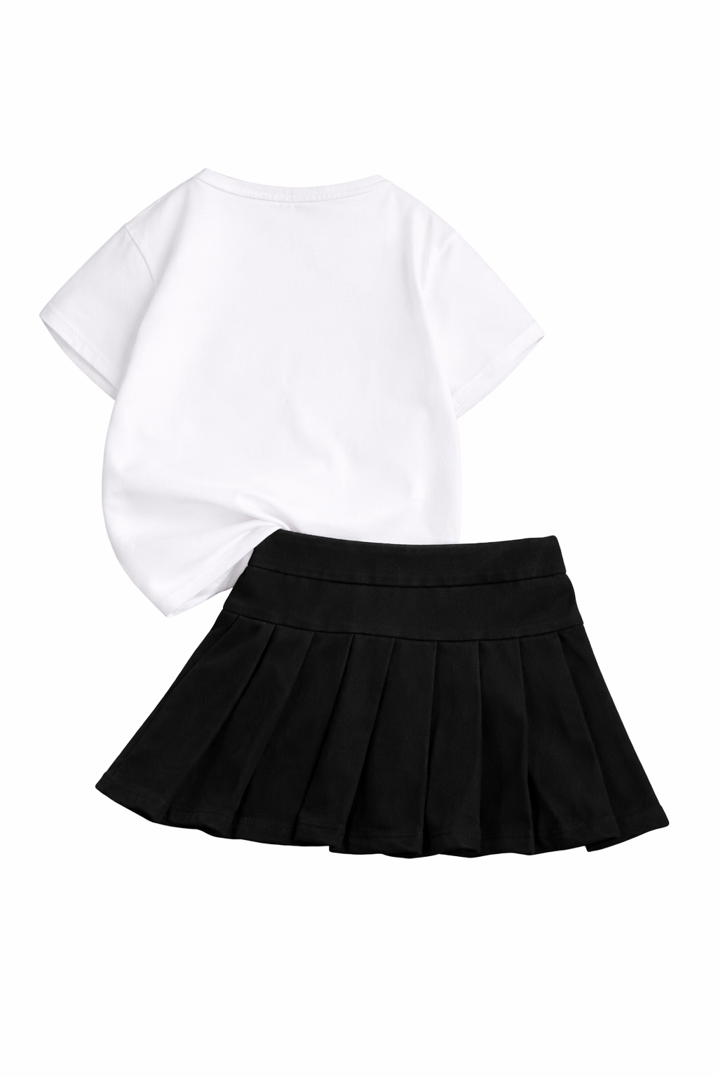 • Skład zestawu: Koszulka z krótkim rękawem (T-shirt) oraz plisowana spódnica.